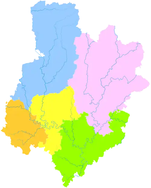 Městská prefektura Pa-čung se člení na pět celků okresní úrovně, a sice dva městské obvody a tři okresy.