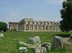 V Paestu, starořeckém městě Poseidóniá (řecky Ποσειδωνία) založeném v 7. století př. n. l., jsou výjimečně zachované tři chrámy v dórském stylu ze 6. a 5. století př. n. l. Jsou to Héřin chrám zvaný „bazilika“, druhý Héřin chrám zvaný Poseidónův a chrám Athény zvaný Demétřin (Cereřin).