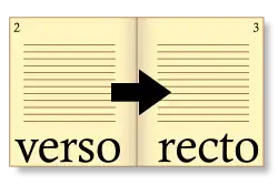 U rukopisů a starých tisků, které nemají číslované stránky, se užívá starší foliace, počítání a číslování listů. Jednotlivé listy se označují zkratkou fol. (z lat. folium, list) a číslem. Levá či rubová stránka v otevřené knize se přitom označuje latinským verso (v.), rub, pravá čili lícová stránka jako recto (r.). Na vedlejším obrázku by levá stránka s číslem 2 byla označena jako "fol. 1v", pravá jako "fol. 2r". Někdy se lícové stránky označují písmenem a, rubové písmenem b. Pak by se stránky na obrázku označily jako 1b a 2a.