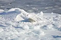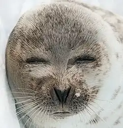 ![]() Dospělý tuleň grónský v Grónském moři | |