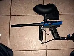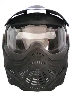 - Paintballová maska - zahrnuje ochranu obličeje včetně uší, čela a částečně chrání i krk hráče. Oči jsou chráněny plexisklem, které nezapře podobnost tvarů s lyžařskými brýlemi. Sklo může být jednovrstvé, nebo dvojvrstvé (termální) sklo, které zabraňuje zamlžování. Maska je nejdůležitější ochranný prostředek, neboť hráče chrání před zraněním v obličeji, a krajním případě i před vystřelením oka.