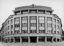 Stavba byla od počátku koncipována jako administrativní a zároveň obytná. V přízemí se nacházelo dvanáct obchodů a dvě garsoniéry pro domovníky. V patrech byly umístěny dvou- až čtyřpokojové byty, dva malé byty pak byly ještě v podkroví, společně s prádelnami a sušárnami.[2]