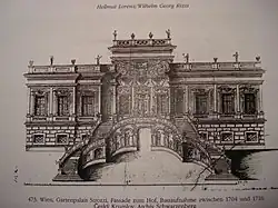 Hraběnka Marie Kateřina, vdova po významném císařském diplomatovi a generálovi Petru Strozziovi, si zde původně nechala vystavět letní sídlo. Budova měla zpočátku podobě pouze jednopatrového hlavního traktu dnešního paláce, avšak náročně řešená zahrada dosahovala až k Piaristické ulici (Piaristengasse). Architekt původní budovy není znám, zřejmě však pocházel z okruhu mistra Johanna Lucase von Hildebrandta.