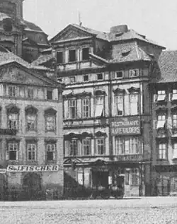 - ↑ Řeč J. U. Dra. Vojtěcha Friče, advokáta, městského radního atd., proslovená v II. řádné schůzi slavného sboru obecních starších král. hlavního města Prahy 6. dne měsíce února 1899 v příčině bourání domů čp. 931, 932, 933-I. na Staroměstském náměstí v Praze, s. 2. Dostupné online.