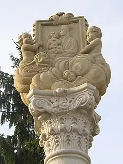 Reliéf Palladia zdobí hlavici tzv. „morového“ sloupu v Buštěhradě (okr. Kladno). Sloup nechala počátkem 18. století postavit majitelka buštěhradského panství Anna Marie Františka titulární vévodkyně sasko-lauenburská.