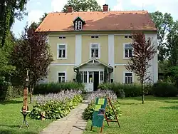 Nachází se v historickém areálu, kde byla v 19. století zpracovávána železná ruda. Po první světové válce získal nemovitost od Colloredo-Mannsfeldů správce jejich panství Václav Palivec, který dal v roce 1935 empírový dům jako svatební dar do doživotního užívání Karlu Čapkovi (1890–1938) a Olze Scheinpflugové (1902–1968).