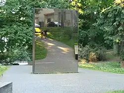 Památník je umístěn v parku u Jablonecké ulice. Má podobu kvádru o rozměrech 3,2 x 4,5 x 0,7 m, který je ze dvou stran tvořen zrcadlovými tabulemi pokoveného skla o tl. 18 mm (každá o hmotnosti cca 800 kg) vsazenými do ocelového rámu. V jeho patě je do dlažby zapuštěn zrcadlově převrácený nápis čitelný v odrazu: „Sám v sobě hledej, zda svobodu bráníš, ctíš nebo omezuješ". Památník je umístěn v těžišti parku na křižovatce chodníků a kompozičně doplněn třemi 10 m dlouhými parkovými lavicemi z lepeného dřeva.[1]