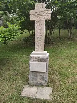 Památník povodní 1997 pochází pravděpodobně z roku 1997 a připomíná tragické události povodní na Moravě a Odře roku 1997. Reliéfový povrch kříže je tvořen technikou stříkání. Kříž je umístěn na zděném sloupku v parku. V určitém období byl pomník odstraněn a pak zpětně umístěn na původní místo.[1]