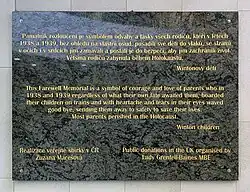 - ↑ Farewell Memorial - Památník rozloučení z.s. [online]. [cit. 2017-05-27]. Výpis z obchodního rejstříku: IČO: 05193303; Právní forma: Spolek; Účel nadace: Postavení a údržba památníku připomínajícího odjezd dětí do Velké Británie vlaky organizovanými Sir Nicholas Winton v roce 1939 a jejich rozloučení s rodiči před cestou do neznáma. Organizování přidružených kulturních a společenských akcí. Vybírání příspěvků na předmět činnosti spolku.. Dostupné online.