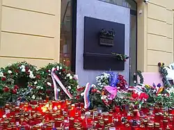 - ↑ a b c Pražský památník 17. listopadu se přestěhuje z podloubí na průčelí paláce. ČT24 [online]. 2016-08-24 [cit. 2016-11-29]. Dostupné online.