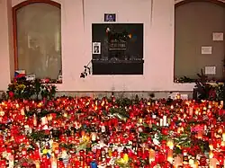 - ↑ Národní třída znovu odhalila památník 17. listopadu, posunul se do průčelí. iDNES.cz [online]. 2016-11-16 [cit. 2016-11-29]. Dostupné online.