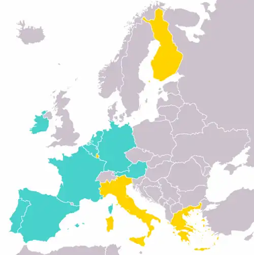 Evropská unie dovolila od roku 2004 jednotlivým státům eurozóny (a Monaku, San Marinu a Vatikánu) vydávat omezený počet vlastních pamětních oběžních euromincí, ale pouze v hodnotě dvou eur. V roce 2004 (prvním roce, kdy to bylo možné) této možnosti využilo Řecko, Lucembursko, Finsko, Itálie, San Marino a Vatikán.