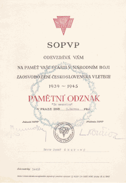 ![]() Pamětní odznak SOPVP 1939–1945 | |
