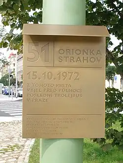 Obrázky, zvuky či videa k tématu Pamětní trolejbusová zastávka Orionka na Wikimedia Commons - Přesně před čtyřiceti lety projely Prahou poslední trolejbusy