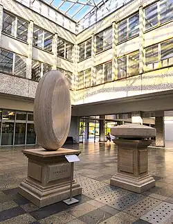dvojice plastik Milana Caise z roku 2024 v atriu nemocnice v Praze-Motole