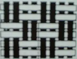 Vazba s dvojnásobným počtem (jemnějších) osnovních nití se nazývá polopanama (nebo dvouniťové plátno).[1]