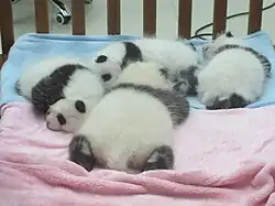 - ↑ a b c d e YING, Zhao. From 8 to 600: A long journey of breeding giant pandas. news.cgtn.com [online]. CGTN, 2020-06-20 [cit. 2022-10-13]. Dostupné online. (anglicky)