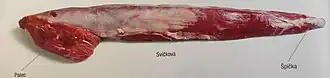Název je odvozen od tvaru masa (svalu), připomínajícího svíci. Jedná se o vysoce kvalitní, šťavnaté zadní maso. Dělí se podle částí na špičku, palec a střed.