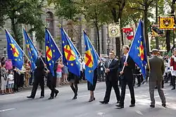 Procesí Panevropské unie na pohřbu jejího čestného prezidenta Otto von Habsburga