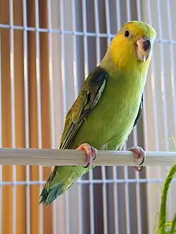 ![]() Samec papoušíčka žlutolícího v kleci | |