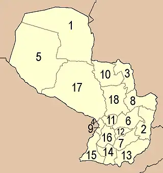 Podrobnější informace naleznete v článku Administrativní dělení Paraguaye.
