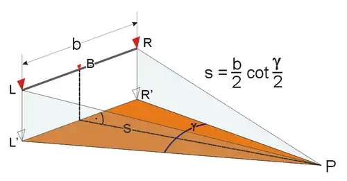 Principem paralaktického měření vzdálenosti je řešení štíhlého trojúhelníku. Na jednom koncovém bodě měřené vzdálenosti (B) je umístěna lať o přesně známé délce. Na druhém koncovém bodě (P) je přesný (vteřinový) teodolit, kterým se měří vodorovný úhel .