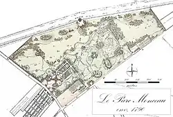 Pozemky byly původně v majetkem vévody ze Chartres, který si zde nechal v roce 1778 vytvořit zemi iluzí (pays d'illusions). Zahrada byla vybavena švýcarskou farmou, holandskými mlýny, pagodou, pyramidou, středověkou zříceninou, římským chrámem, které byly doplněny květinami a stromy. Za Francouzské revoluce byla zahrada zkonfiskována a roku 1793 znárodněna. Dne 22. října 1797 zde André-Jacques Garnerin uskutečnil první seskok s padákem. Během Restaurace se zahrada stala majetkem rodiny d'Orléans. V roce 1860 zahradu koupilo město Paříž. Část prodalo na stavební parcely a z další části byl utvořen veřejný park.