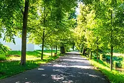 Lokalita se beze zbytku nachází v historickém inundačním obranném prostoru renesančního zámku jemuž tvoří osu původní odvodňovací kyneta (příkop) vedoucí podél aleje do nedalekého Labe. Kyneta má v dnešní době charakter velmi pomalu tekoucího potoka.