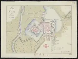 V další stavební fázi vzniklo moderní valové opevnění, které obklopilo hradní jádro s obdélným předhradím. Těžištěm obrany se stala čtveřice rondelů rozmístěných v nárožích. Podél paty valu vede zeď s klíčovými střílnami pro ruční palné zbraně, chráněná na vnější straně vodní plochou příkopu. Korunu valu lemovala pouze hliněná nebo dřevěná předprseň, která chránila dělostřelecká postavení. Vstup do hradu umožňoval trojboký barbakan vysunutý do prostoru města a za ním následovala brána umístěná v nálevkovitým zalomení hradby.[3]