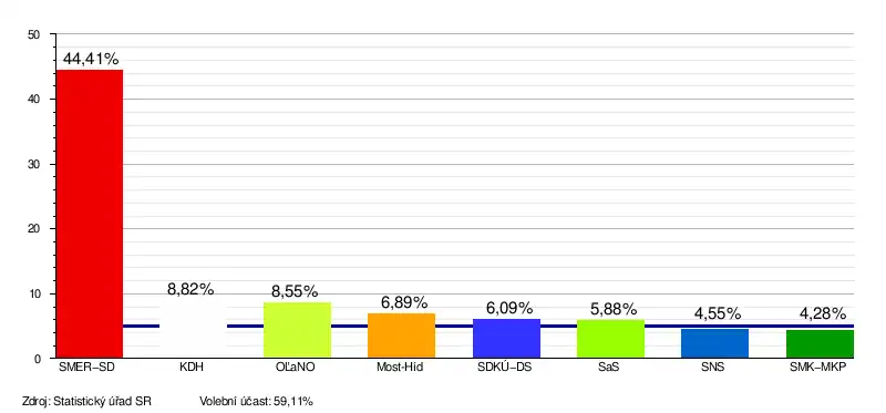 | SMER - sociálna demokracia | 1 134 280 | 44,41% | ▲ +9,62% | 83 | ▲ +21 |