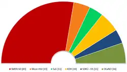 | SMER-SD | 34,79% | 62 | 43,1% | 70 | 45,2% | 79 | 43,9% | 74 | 41,8% | 81 | 37.3% | 69 | 39,7% | 75 |