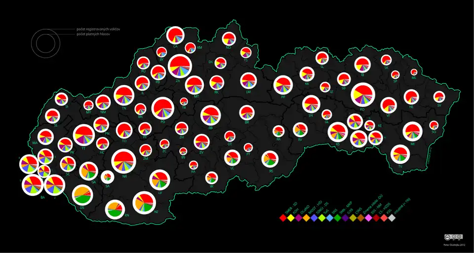 - ↑ a b c Volby do NR SR 2012 — Počet a podiel platných hlasov odovzdaných pre politické strany. app.statistics.sk [online]. [cit. 2012-03-11]. Dostupné v archivu pořízeném dne 2012-03-14.