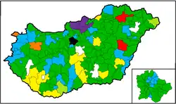 | Kereszténydemokrata Néppárt (KDNP) | 317 183 | 6,46% | 126 636 | 3,71% | 21 | 5,44% | Vláda |