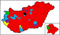 | Kereszténydemokrata Néppárt (KDNP) | 397 887 | 7,37% | 126 616 | 2,95% | 22 | 5,70% | Opozice |