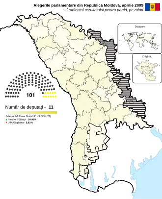 V tomto článku byl použit překlad textu z článku April 2009 Moldovan parliamentary election na anglické Wikipedii.