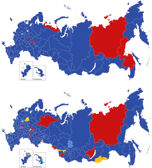 | Jednotné Rusko | 28 064 258 | 49.8 | −4.4 | 126 | 25 201 048 | 47.5 | 198 | 324 | -19 | |||