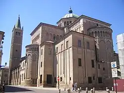 - Katedrála Nanebevzetí P. Marie, zvaná Santa Maria Assunta z let 1059–1178 je trojlodní románská bazilika s příčnou lodí a s hranolovou gotickou věží v průčelí z let 1284–1294. Po stranách vchodu je dvojice mramorových soch ležících lvů od Benedetta Antelami († 1200). Vnitřek je neobyčejně bohatě vyzdoben, od románských plastik přes renesanční iluzivní fresky Antonia da Correggio v kupoli, až po barokní obrazy.