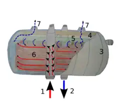 Hlavní částí parogenerátorů jsou teplosměnné trubky, ve kterých proudí voda o vysoké teplotě (u jaderných elektráren 320 °C) a vysokém tlaku (u jaderných elektráren asi 16 MPa) z primárního okruhu. Další důležitou částí je tlaková nádoba parního generátoru. Do této nádoby přitéká voda ze sekundárního okruhu o nižší teplotě a tlaku než voda v okruhu primárním. V této nádobě jsou horizontálně umístěny dříve zmíněné trubky. Tyto trubky jsou omývány vodou ze sekundárního okruhu, ze které se při kontaktu s trubkami tvoří pára. Tato pára je pak přiváděna do separátorů páry a dále pokračuje potrubím do turbíny. Ve spodní části tlakové nádoby parního generátoru se nachází vývody pro odvod odkalu, v horní části se nachází potrubí pro odvod odluhu.[5]