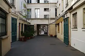 Ulice vede od domu č. 32 na Rue Meslay a končí u domu č. 25 na Boulevard Saint-Martin. Uprostřed průchodu se nachází nádvoří.
