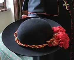Černý klobouk se zeleno-zlatým lemováním a zlatými ornamenty používají arcibiskupové. Stejný typ, ale s červeno-zlatým lemováním používají kardinálové. Papežský pastýřský klobouk je celý v červené barvě se zlatým lemem a ozdobený šňůrami se zlatými ornamenty. Od doby papeže Pavla VI. je celočervený klobouk vyhrazen pouze pro papeže. Nejedná se o již opuštěnou tradici, protože červený pastýřský klobouk ozdobený zlatem nosil papež Jan Pavel II. a používal ho i Benedikt XVI. při slavnostních neliturgických setkáních pod širým nebem (zvláště bylo-li slunečno).