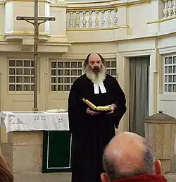 V oslovení pastora se neužívá „pane“, ale „bratře“. V oslovení faráře či farářky a kazatele či kazatelky se užívá „bratře“ či „sestro“ – „bratře faráři“, „sestro farářko“, „bratře kazateli“, „sestro kazatelko“. Oslovování souvisí s protestantskou teologií, která mluví o všeobecném kněžství. Pastoři, faráři, farářky, případně kazatelé a kazatelky některých církví jsou sice „vysíláni do služby“, „ordinováni“ a „instalováni“, ale nejsou svěceni a nejsou považováni za pokračovatele starozákonního kněžstva.[pozn. 1]