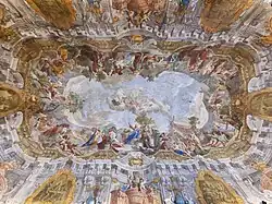 - Apoteóza císaře Karla VI. jako slunečního boha Apollóna, mezi alegorickými postavami věd a umění, 1739, nástropní malba, schodiště císařského křídla kláštera Göttweigu, dolní Rakousko