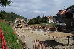 ![]() Paví vrch od bývalé lávky u Radlické ulice | |