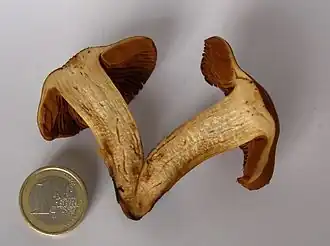 - ↑ konkrétní příklad houby dodán podle: Jaroslav Vašák: Jedovaté houby na Recepty online.cz, kde je ovšem označena českým jménem pavučinec skvělý; dostupné: http://www.receptyonline.cz/zobraz_clanek.php?id=239[nedostupný zdroj] (navštíveno 30. 8. 2008); konkrétní české jméno houby dodáno podle BioLibu: http://www.biolib.cz/cz/taxon/id60670/ (navštíveno 30. 8. 2008)
