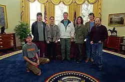 ![]() Pearl Jam v roce 2016. Zleva Mike McCready, Jeff Ament, Eddie Vedder, Matt Cameron, Stone Gossard a sezónní hudebník Boom Gaspar. | |