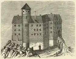 Hrad a městečko Pecka, kresba Johanna Venuta z roku 1820