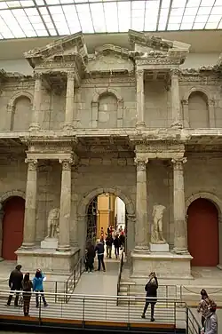 Trhová brána z Milétu – brána, která původně stávala u vstupu na tržiště antického Milétu je vystavena jako celek (rozměry 28,29 × 6,66 metrů, výška 16,73 metrů), více než 60 % stavby je tvořeno původními kameny. Brána vznikla ve 2. století našeho letopočtu jako přechod mezi agorou a tržištěm.
