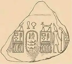 - ↑ a b c d NAVILLE, Edouard. The Mixed Cemetery and Umm el.Ga’ab [online]. London: 1914. S. 36. Dostupné online. (anglicky)