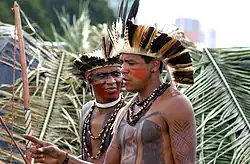 Brazilští indiáni s čelenkou z ptačích per