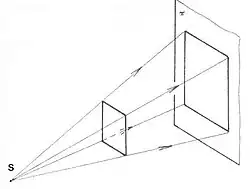 Perspektivní promítání je takové, kde promítací přímky vycházejí ze společného bodu (střed promítání), který nesmí ležet v průmětně (viz obrázek 1). Není zachována rovnoběžnost paprsku, které vycházejí ze středu promítání. Jsou to obecně různoběžky.